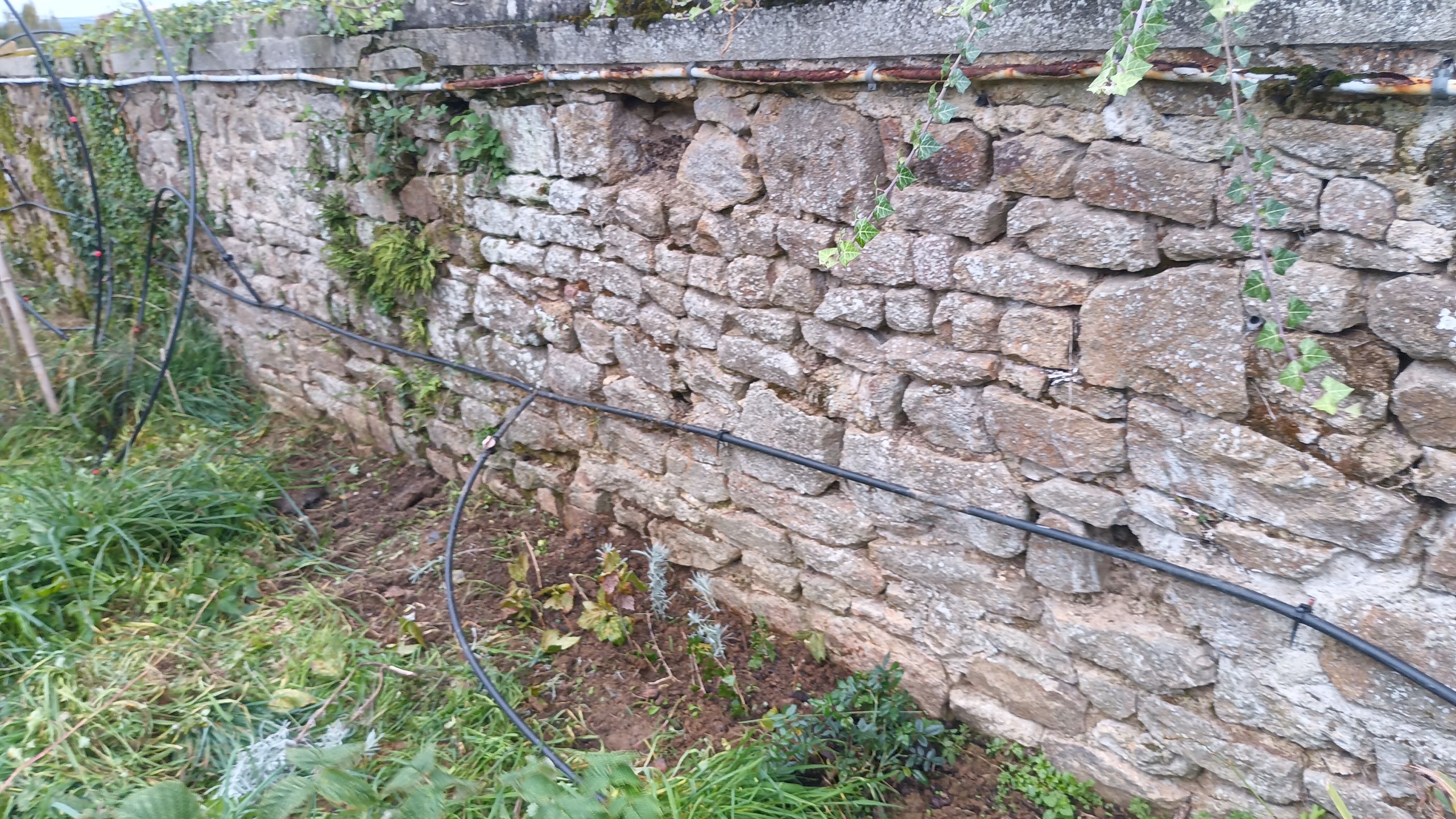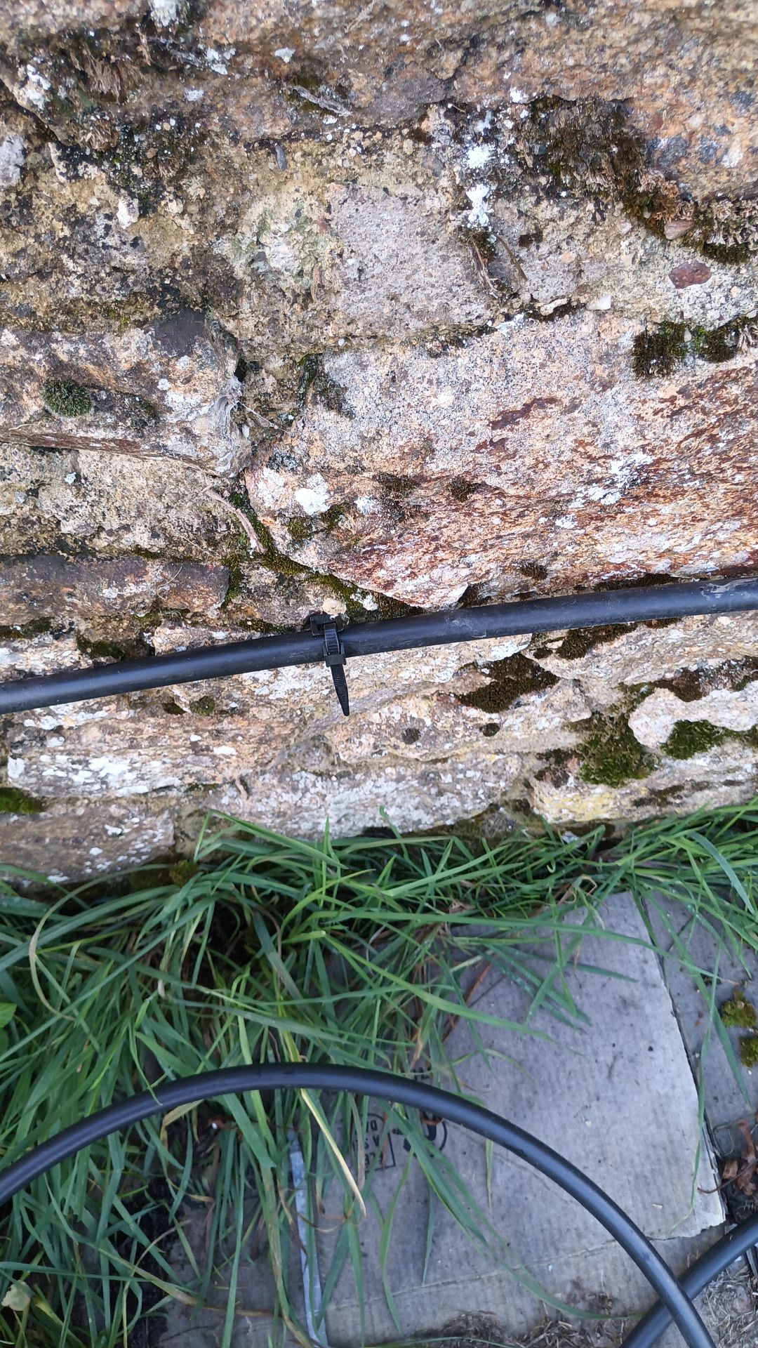 Les tubes d'arrosage qui trainaient dans les herbes hautes on été fixé le long du mur en hauteur.