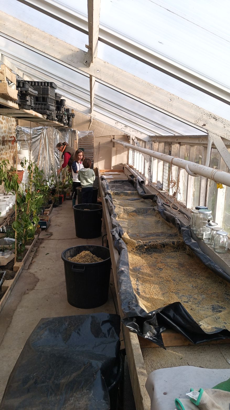 En cette période d'hiver il semblerait toujours difficile de trouver une activité ! Mais tel n'est pas le cas en ce mercredi, nous avons entrepris la rénovation des nos bacs à sable. Ces bacs à sable que nous gorgeons d'eau servent à humidifier les cultures pour que nos plants ne sèchent pas sur pied. C'est la manière la plus simple que nous avons trouvé pour en pas avoir à arroser tous les jours.