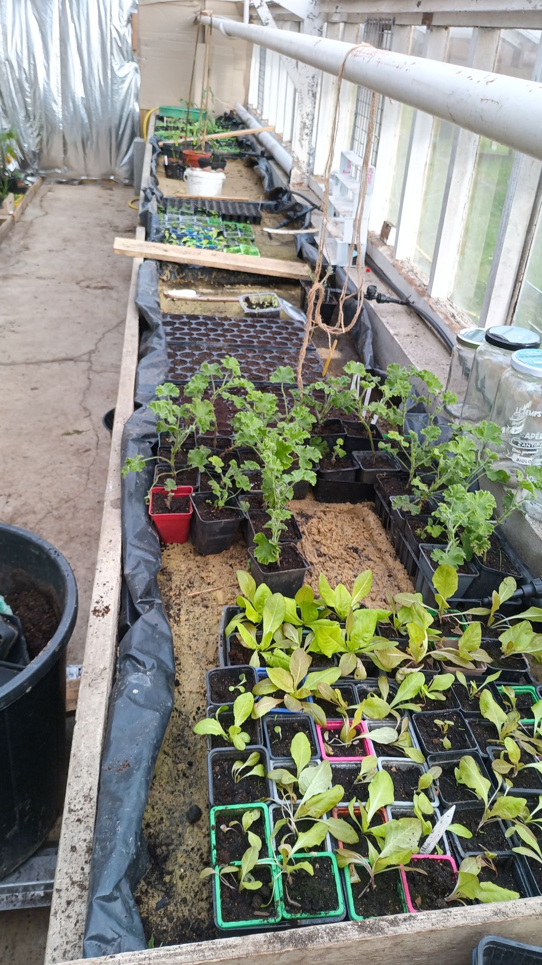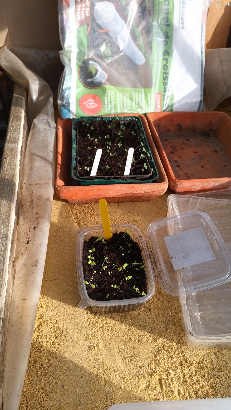 Les salades d'hiver qui repartent bien, ainsi que les boutures de géraniums
