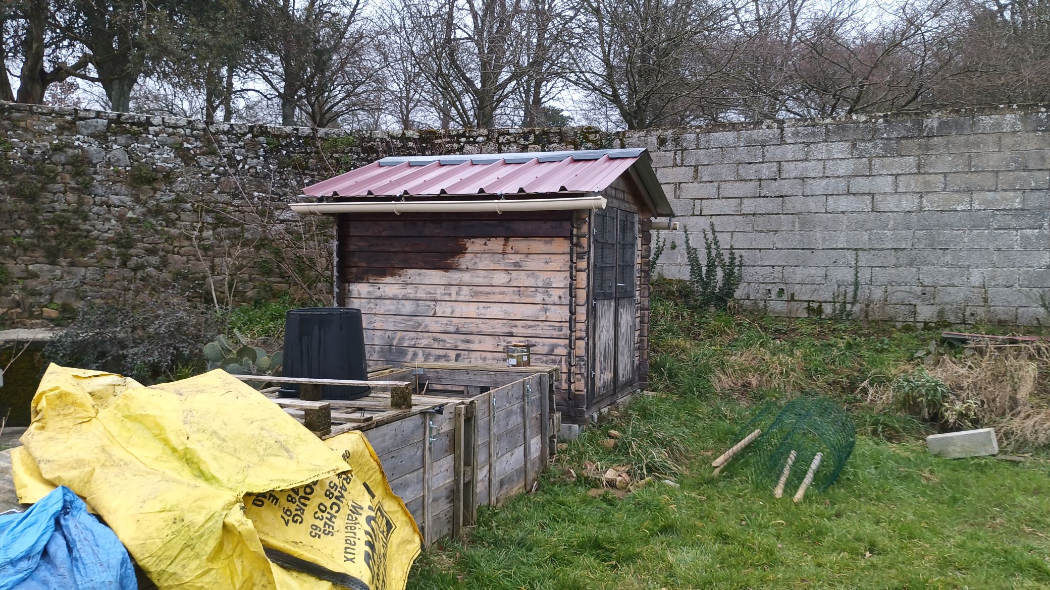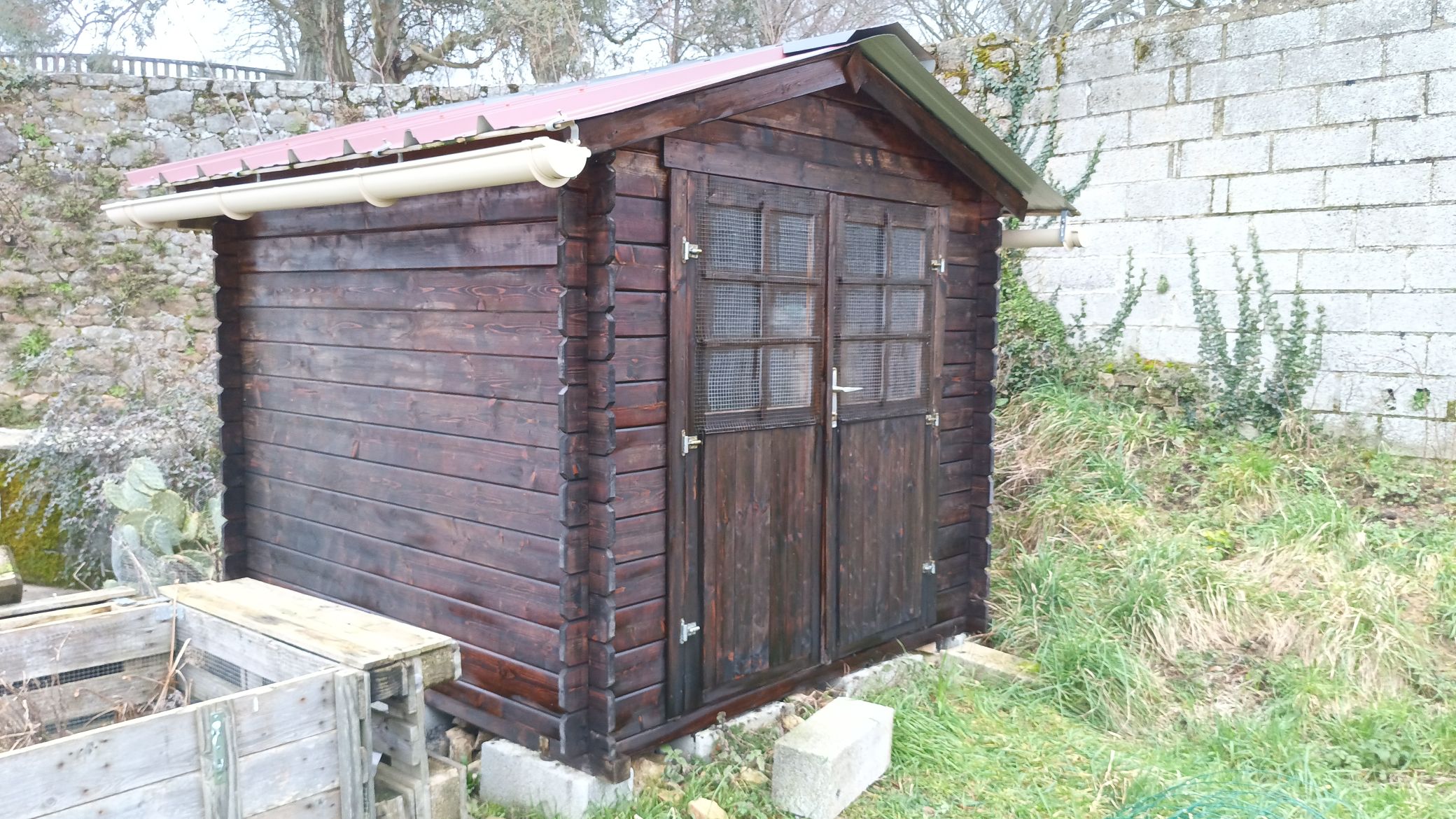 Cette semaine, nous avons fini l'application de la lazure sur la cabane en bois des toilettes sèches.