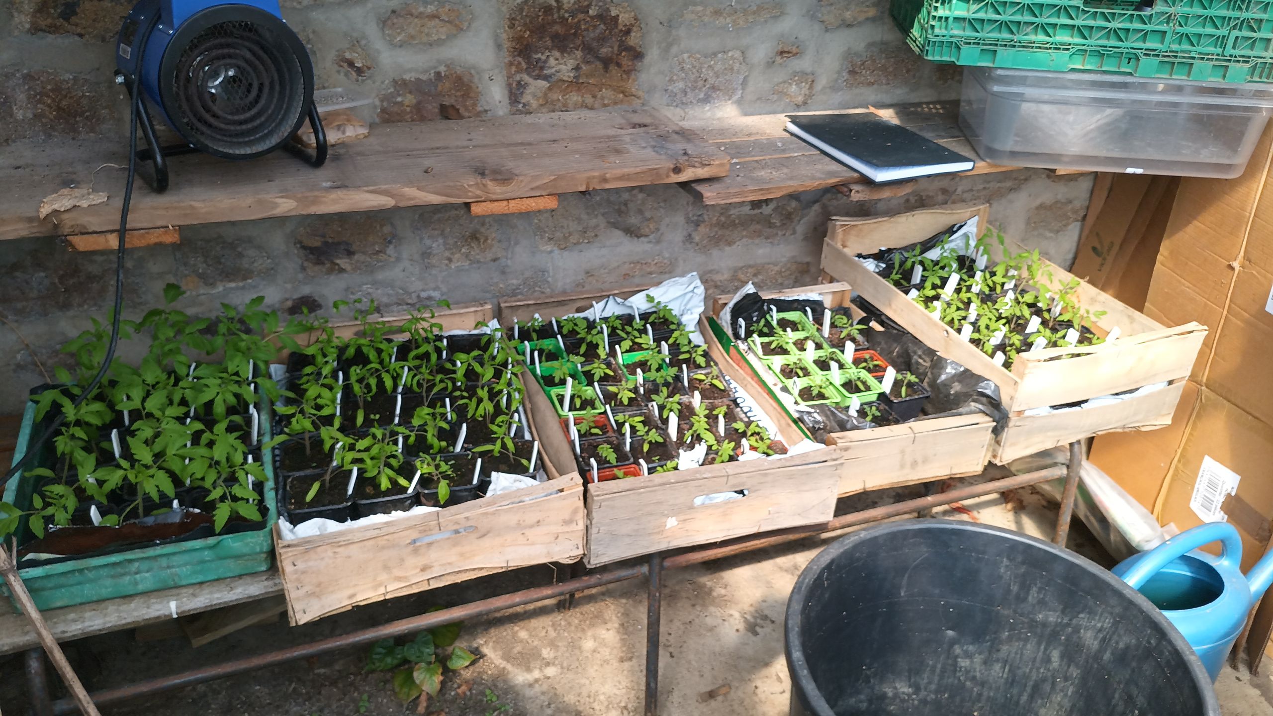 et pour le plaisir, voici les pieds de tomates de l'expérimentation de cet hiver, semés en novembre et qui vont bientôt produire