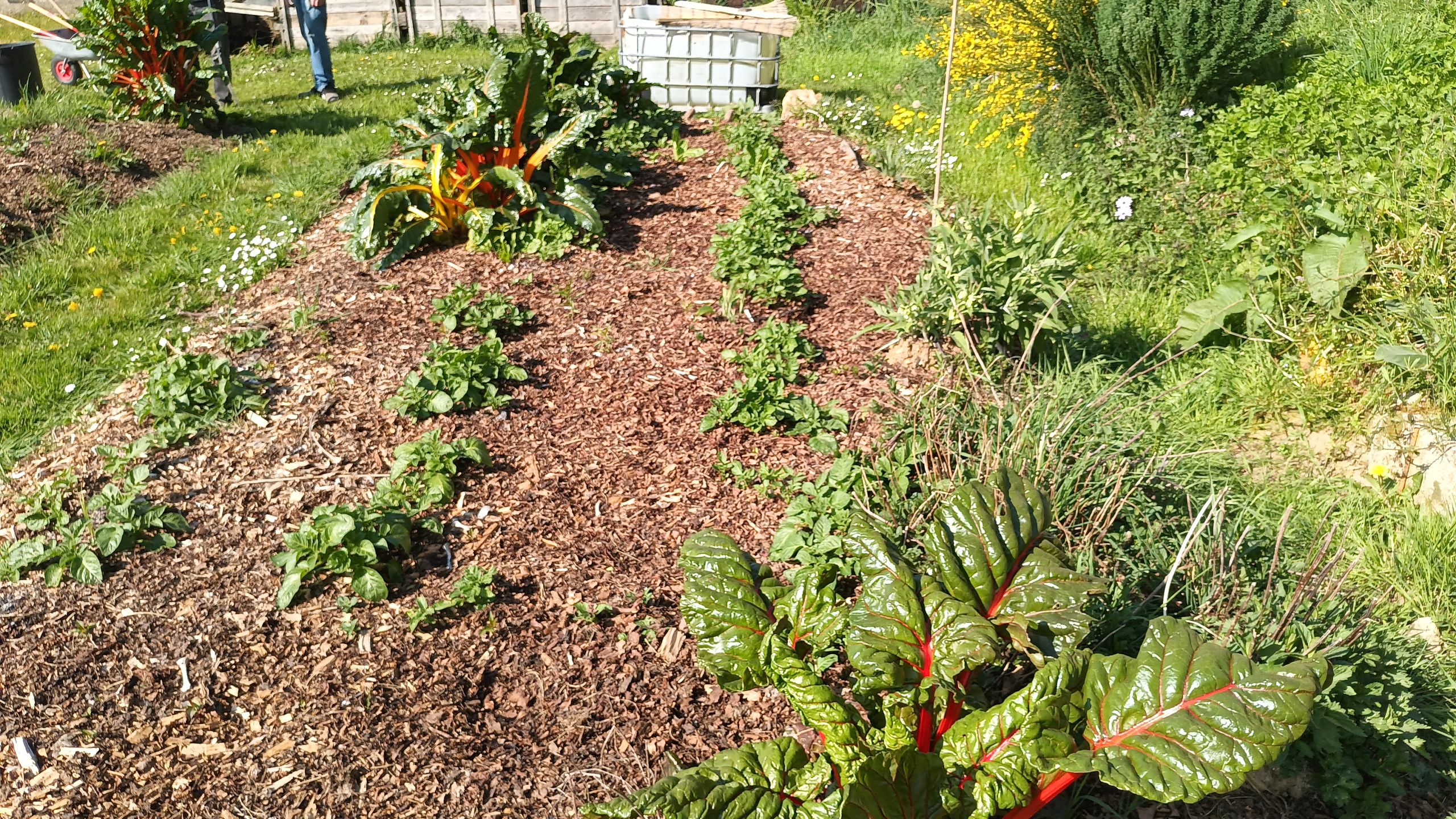 Pommes de terre primeures sur cendre de la fin d'hiver qui ont tenues bon