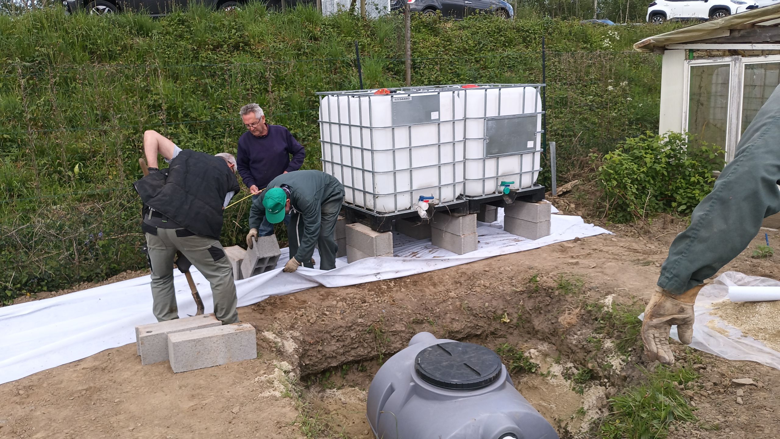 L'équipe des jardins rue de la liberté peut être fière, il reste maintenant à raccorder la cuve de décantation à positionner les 4 cuves de stockage.