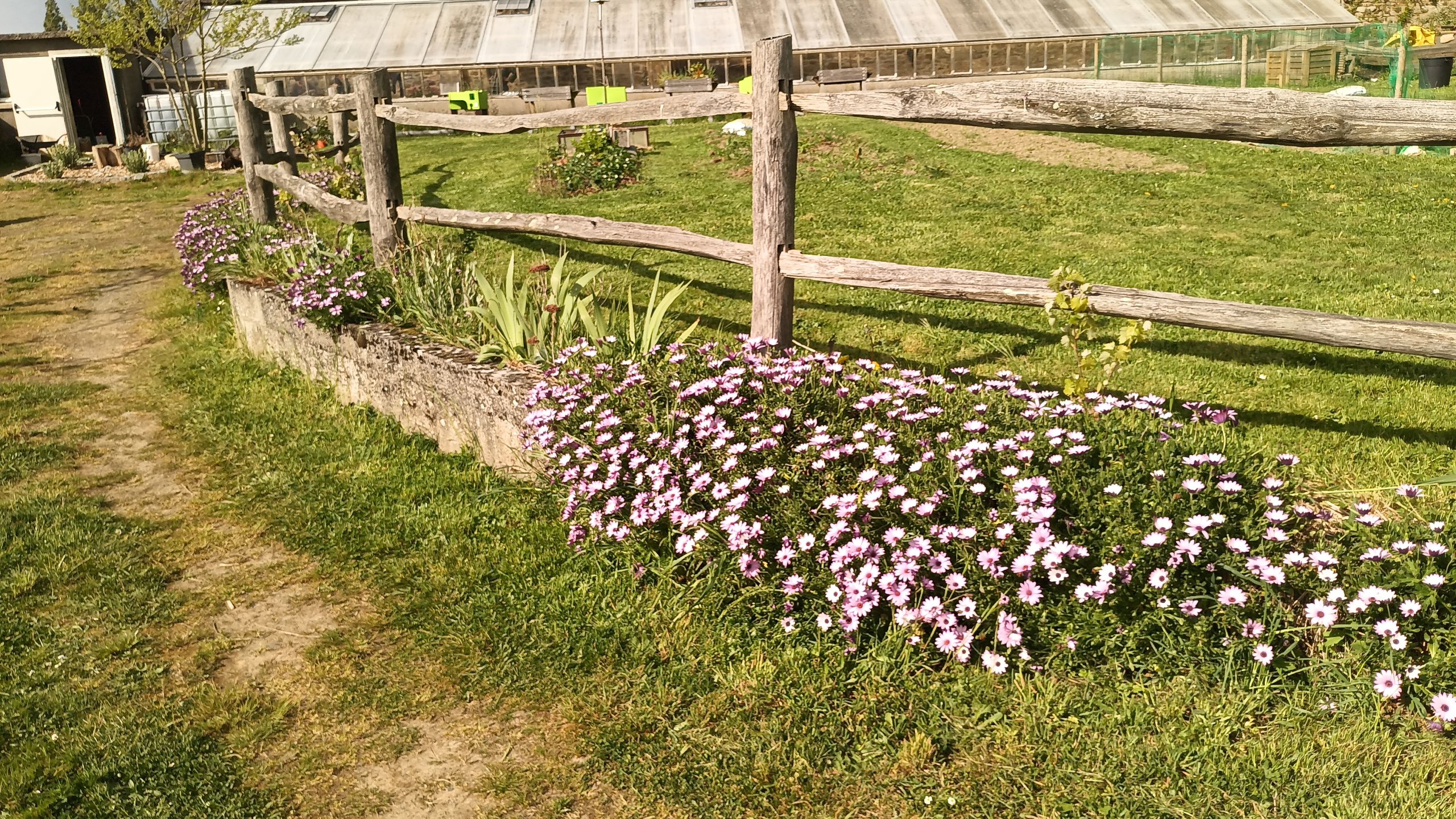 - passer la débroussailleuse sur la butte devant la serre, pour info on a tout d'un bout à l'autre, la SHA n'a que sa partie de serre et simplement un droit d'accès à sa partie de serre.